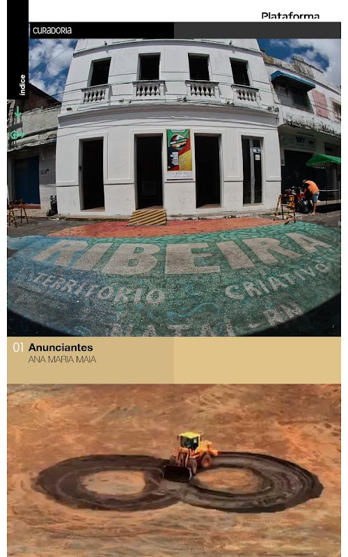 PLATFORM will be published annually, in English, with a commitment to document, contextualize and map the Brazilian art scene today , with its various agents and legitimizing instances: artists , institutions , galleries , collectors , critics, curators, partnerships, independent spaces, etc .
