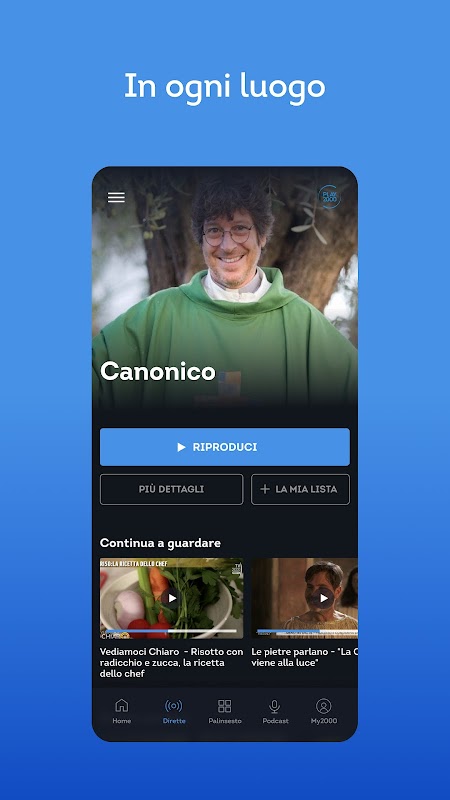 Play2000, l'application de Tv2000 et inBlu2000, est une plateforme de streaming qui explore et divertit avec des émissions en direct, de la vidéo à la demande et des podcasts, connectée à un diffuseur doté d'un fort sentiment de communauté.