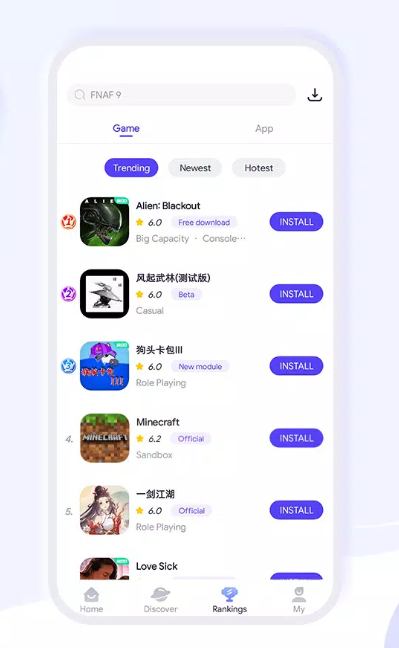 La majeure partie du catalogue est composée de jeux, mais vous pouvez également télécharger des versions alternatives d'applications telles que Picsart, WhatsApp, Instagram ou TikTok. L'application a une conception simple qui nous permet de parcourir facilement les différentes catégories de contenu, ainsi que d'accéder à un profil personnel à partir duquel nous pouvons configurer différents paramètres de fonctionnement.