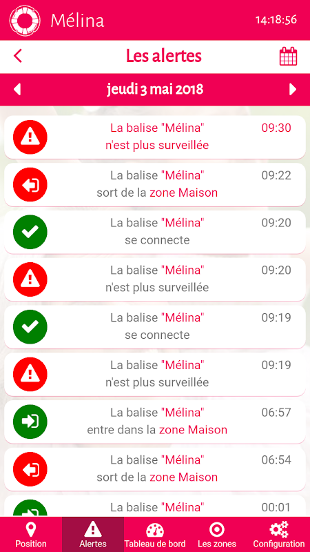 - Alerte de sortie de zone