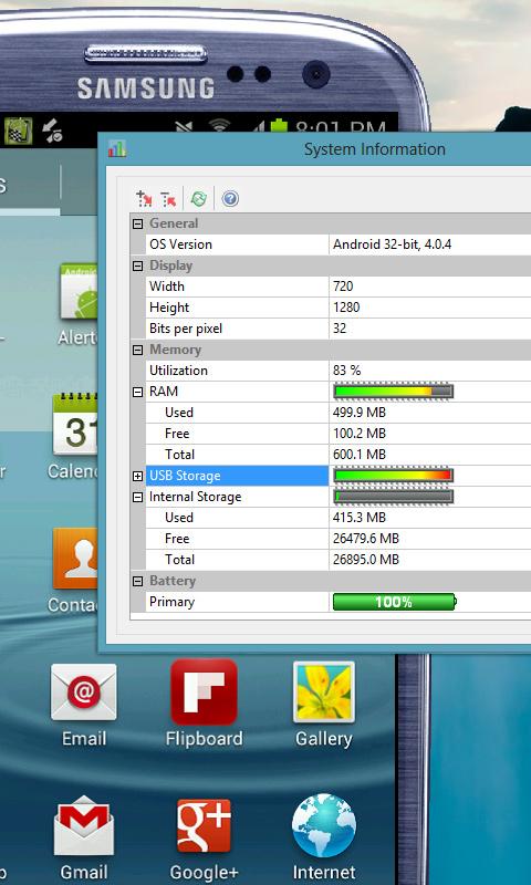 • System Information - Monitor vital system information, such as battery levels, memory utilization, and operating system and processor information