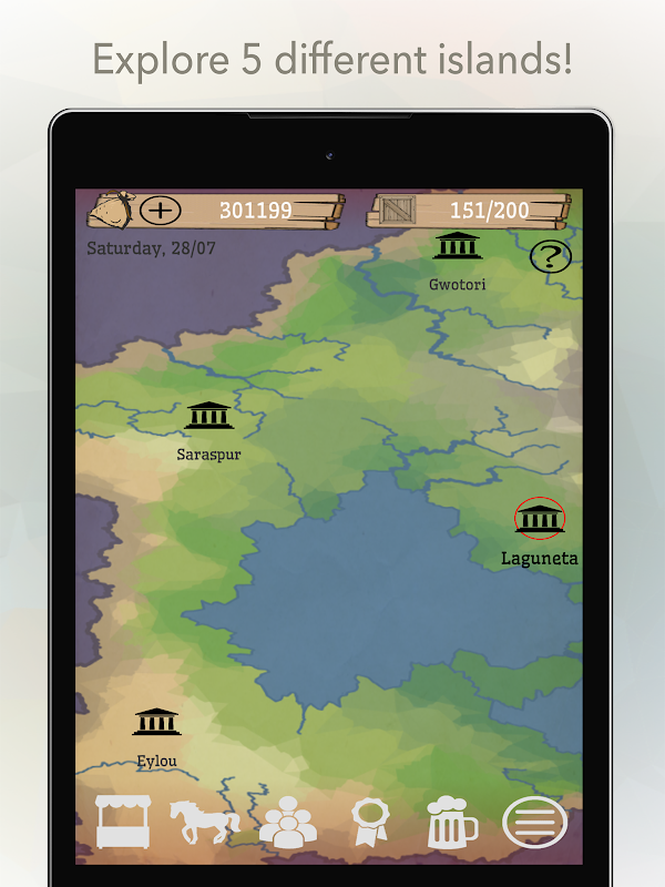 Vous avez le choix entre de nombreux types de marchandises incroyables : bronze, rubis, sel, vin, épices, médicaments, poissons, fruits, charbon, céréales et même poison. Au fur et à mesure que vous jouez et gagnez de l'argent, vous pourrez échanger davantage de marchandises et améliorer votre caravane pour transporter plus de marchandises. Commercez avec l'île-cité antique. Bâtissez votre empire.