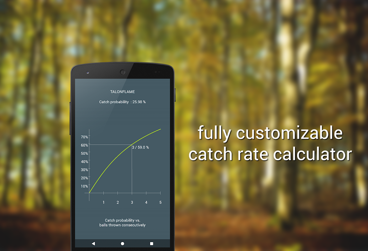 Ne gaspillez plus vos Poké Balls ! Entrez les PV de votre adversaire et son statut (paralysé, brûlé gelé, endormi) pour avoir la probabilité de le capturer !