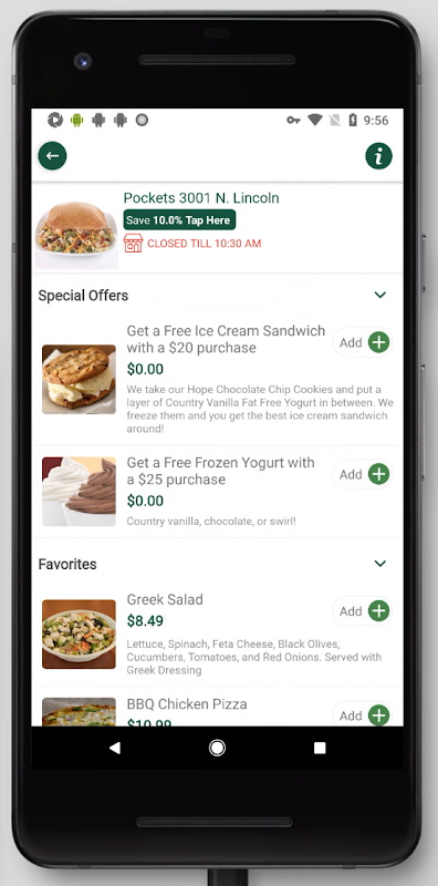 2. Pockets passe au numérique maintenant et possède sa propre application de commande en ligne. Si vous souhaitez commander de délicieux plats chez nous, téléchargez simplement notre application et passez commande en 3 étapes rapides. Créez votre commande comme vous l'aimez ou choisissez l'un de nos combos dans le menu. Ajoutez des éléments du reste de notre menu robuste. Et avec le Order Tracker ®, vous pouvez suivre votre commande à partir du moment où vous la placez jusqu'à ce qu'elle soit livrée, effectuée ou récupérée.