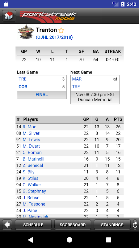 Suivez votre ligue puissance Pointstreak ou équipe favorite!
