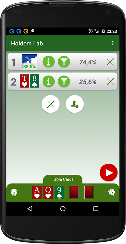 Quickly and easily you compute and analyze the pot odds in poker game Texas Hold'em.