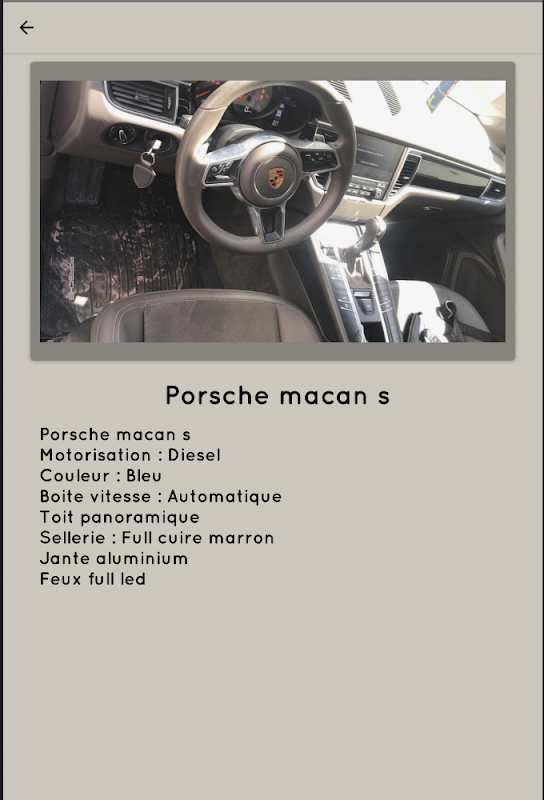 Dans cette application, vous pouvez vérifier les voitures disponibles dans notre agence, leurs caractéristiques et la date de disponibilité