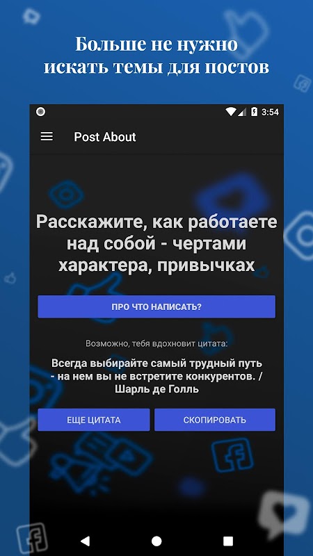 Post About est une application simple et pratique qui vous aidera à ne plus vous inquiéter du manque d’idées pour vos publications sur les réseaux sociaux.