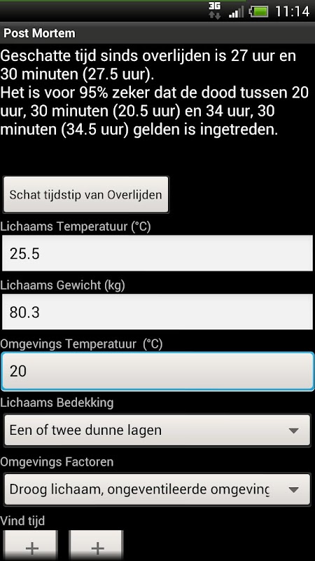 Een rekenmachine die op basis van een aantal eenvoudige gegevens een schatting maakt van het tijdstip van overlijden van een overledene.