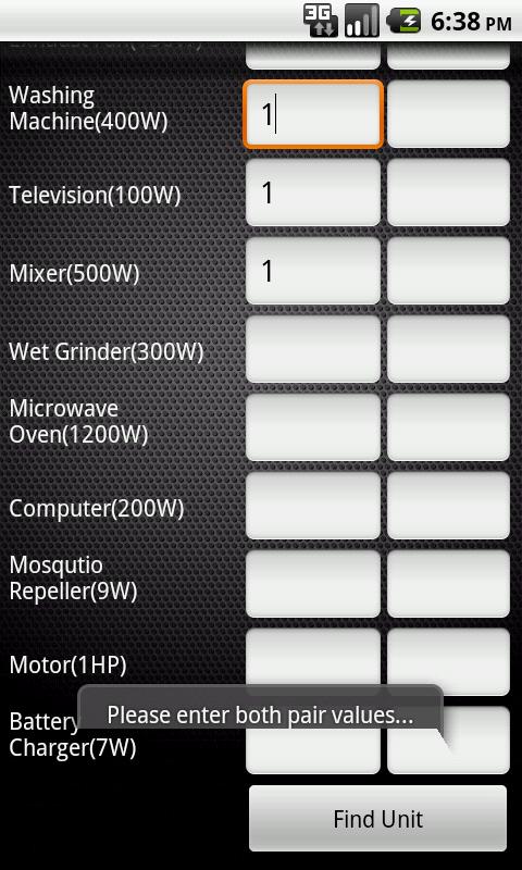 Utilisez les applications de puissance unité d'enquête pour calculer la consommation d'énergie de vos différents appareils et dispositifs électriques. Vous pouvez calculer approximativement la charge dont vous avez besoin pour votre connexion sur la base de la charge de chacun de vos appareils électroménagers. Entrez vos heures d'utilisation et le nombre d'équipements à utiliser et trouver vos unités mensuelles approximatives.