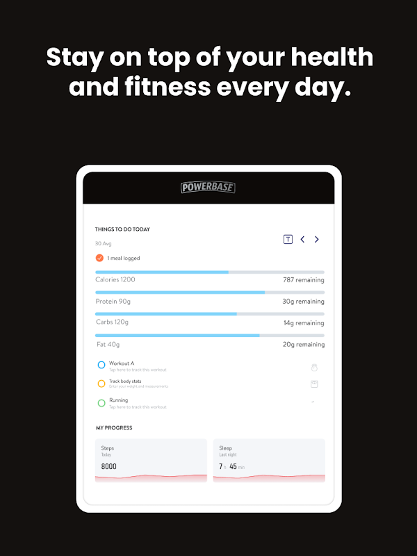 Avec l'application POWERBASE, vous aurez accès à des programmes d'entraînement spécialement conçus pour vous aider à atteindre vos objectifs de remise en forme et de santé ! Vous pouvez suivre et suivre vos entraînements, votre alimentation, vos habitudes de vie, vos mesures et vos résultats, le tout avec l'aide de votre coach.