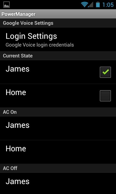 Also, Google Voice phone numbers can be enabled/disabled when AC power is connected/disconnected.