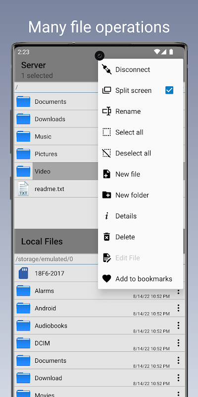★ Mode écran partagé. Parcourir les fichiers localement et à distance en même temps