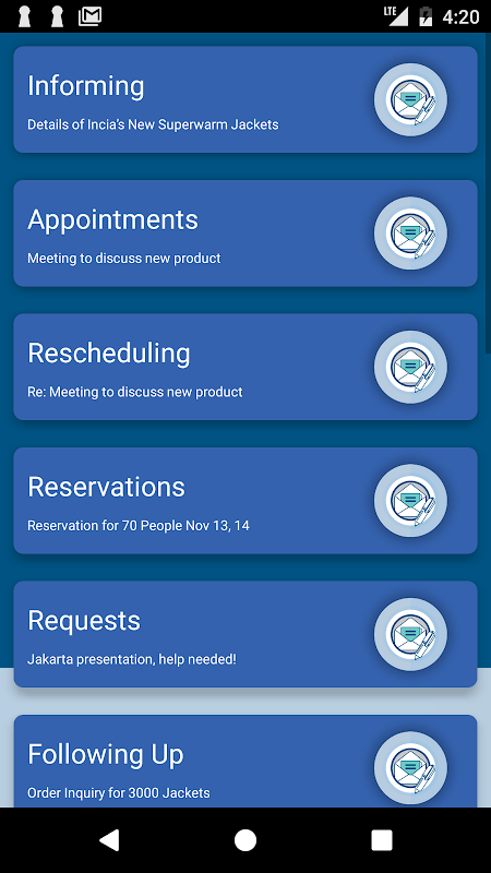 Choisissez le type de courrier électronique - informer, demander, demander, etc.