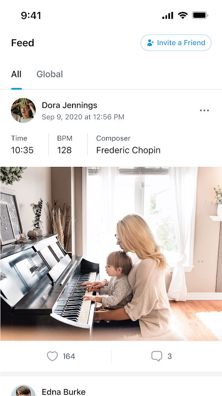 Voyez combien vous pratiquez chaque jour ou chaque semaine, fixez des objectifs, demandez de l'aide si vous êtes bloqué et rejoignez une communauté de milliers d'autres musiciens apprenant ensemble.