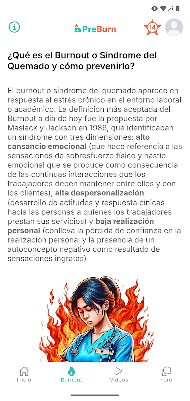 PreBurn : Application pour l'évaluation, la prévention et l'intervention du burn-out en soins infirmiers.