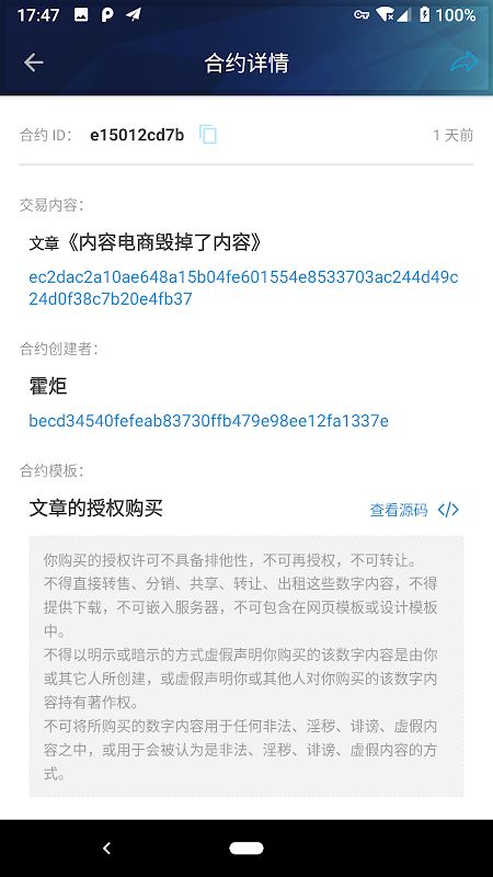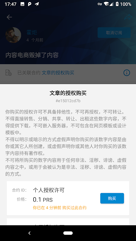 - Créez un contrat pour vos propres articles / photos, gagnez des jetons PRS en accordant une autorisation de licence de contrat