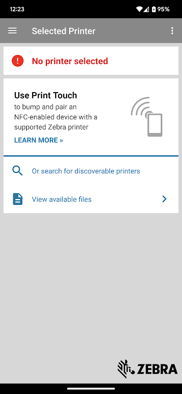 PrintConnect gère le processus de découverte et de couplage avec les imprimantes Zebra DNA via des connexions Bluetooth ou WLAN, réduisant ainsi la quantité de code requise dans votre application. PrintConnect prend en charge notre fonction Print Touch, ce qui rend le processus de couplage encore plus facile !