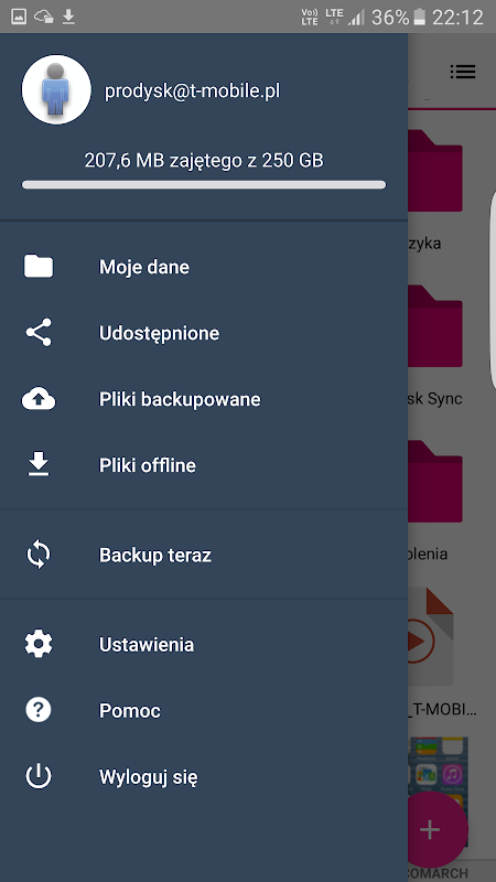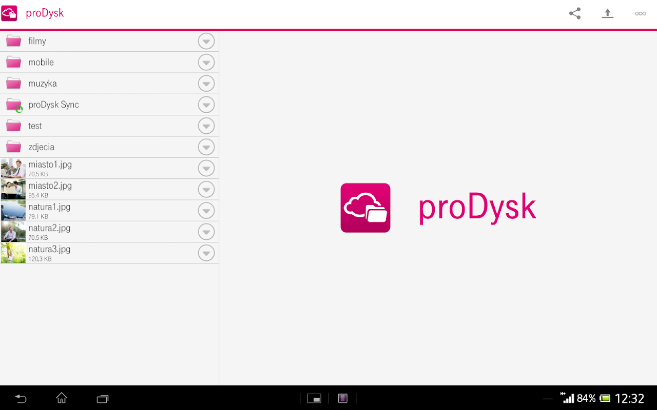 W celu skorzystania z aplikacji musisz mieć aktywne konto w usłudze proDysk na T-MobileCloud.