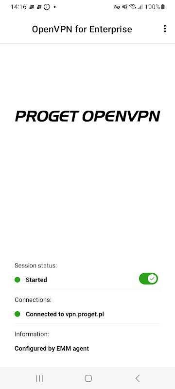 • se connecte au serveur OpenVPN et donne accès aux données de l'entreprise via un pare-feu à l'aide d'appareils avec Android Enterprise (BYOD, COBO, COPE)