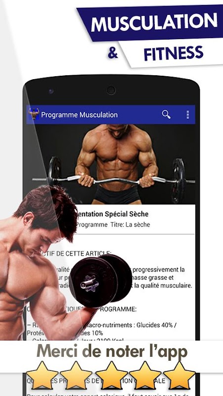 Meilleurs Programmes Musculation disponible sur l'application: