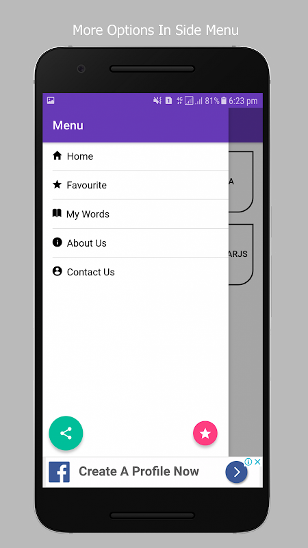 • User can add his own word with its meaning, syntax and example.
