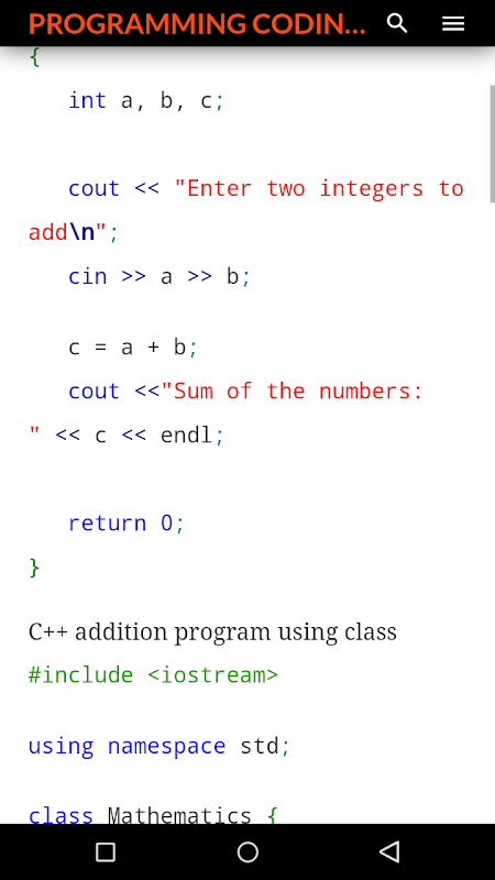 Dans cette application, vous pouvez obtenir des codes incroyables sur le langage c et c plus plus.