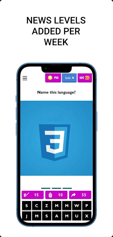 The objective of Programming Logo Quiz is to try to guess the the programming language by the image given in each level. You are given 14 letters and you must choose the letters in the right order to spell the answer right. You will be then given coins when you answered right, if you are stuck with a level you can ask for hints that will cost you some coins.