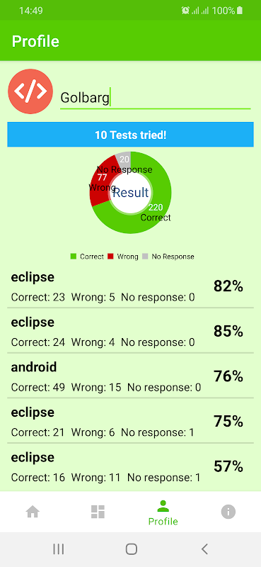 Cette application contient plus de 58 catégories différentes de sujets liés à la programmation (java, android, PHP, javascript) à pratiquer.