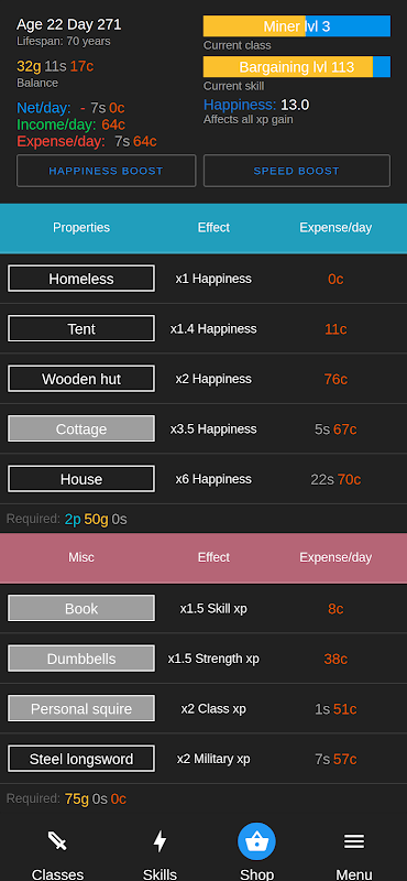 Vous débutez comme mendiant, parvenant à peine à subvenir à vos besoins au fil des jours. Cependant, au fil des années, vous acquerrez de nouvelles compétences et une solide expérience professionnelle pour accéder à de nouveaux emplois bien rémunérés tout en gérant vos dépenses courantes…