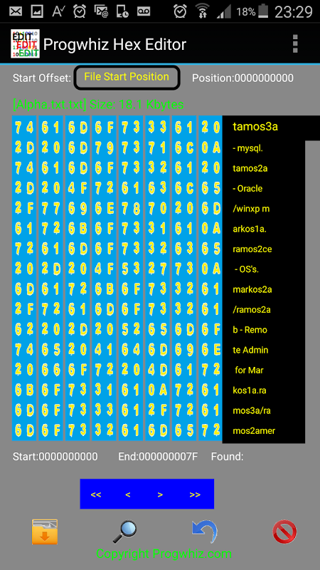Fichier Progwhiz Hex Editor avec recherche puissant et remplacer. Demo est en lecture seule