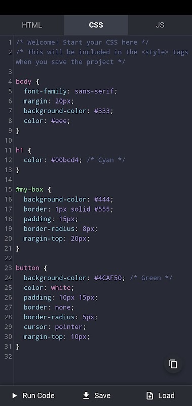 Welcome to your new Mobile Code Editor for HTML, CSS, & JavaScript!