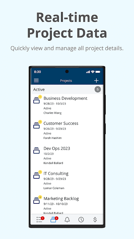 Project Insight apporte une gestion robuste du travail à votre appareil mobile avec toutes les fonctionnalités standard du bureau PI®. Aidez votre équipe à mieux travailler ensemble lors de vos déplacements grâce à une visibilité complète de vos listes de travail et problèmes, projets, notifications, suivi du temps, dépenses, approbations, etc.