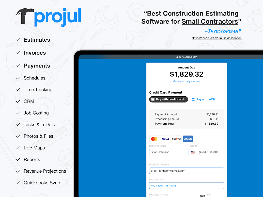 Projul est un CHANGEMENT DE JEU absolu pour toute entreprise de construction qui cherche à faire passer son entreprise au niveau supérieur avec les outils les plus faciles à utiliser de l'industrie.