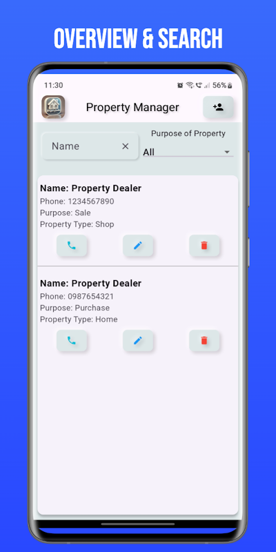 Avec un design convivial et attrayant, Property Dealer simplifie la gestion des clients pour les concessionnaires immobiliers de tous niveaux. Téléchargez maintenant pour garder les données de vos clients organisées et accessibles