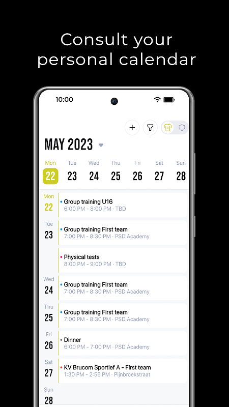 L'application de PSD vous permet de vérifier le calendrier, les résultats de matchs, recevoir le feedback ou de discuter avec les membres de l'équipe. Indiquez si vous serez présent et restez toujours informé.