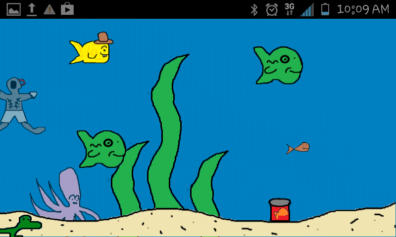 Marvin the undertank explorer. Since Pssh! Fish! was made for all ages, the fish will continue to appear