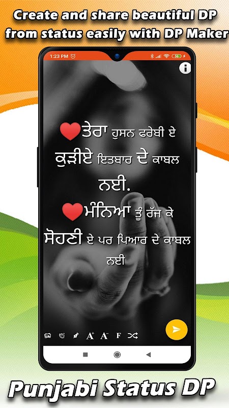 Bonjour amis, bienvenue dans l'application DP Statut Punjabi. Nous avons ici une grande collection de "Seuls les messages en langue punjabi" avec une interface utilisateur conviviale.