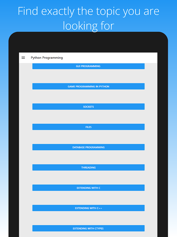 Python Book Offline is a complete book that will guide you from a beginner to a real expert in Python. This Python learning app covers all the basic concepts necessary to develop scripts in Python. No prior knowledge is required. It starts from the basics to build a solid foundation and provides step-by-step instructions on how to write and run scripts. With this Python learning app, you will learn all the basics needed to get the most benefit from this wonderful language.
