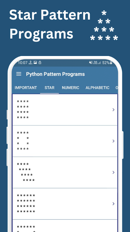 Informations Python Pattern Programs APK