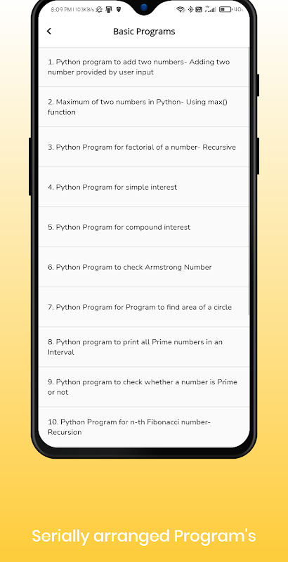 L'application Python Programs propose une collection complète de programmes Python adaptés aux débutants et aux apprenants intermédiaires. Entraînez-vous au codage grâce à de nombreux exemples et approches pour chaque programme afin d'approfondir votre compréhension. Apprenez Python étape par étape grâce à des explications et des commentaires pertinents. Copiez, enregistrez et exécutez facilement des programmes depuis l'application.