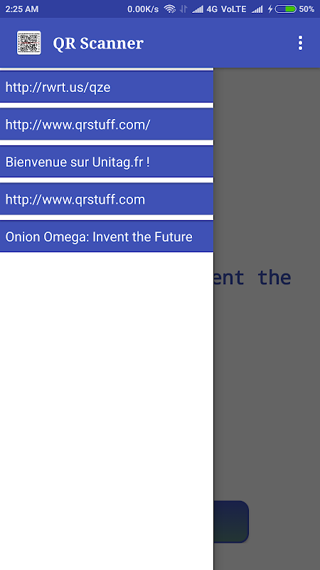 Slide left to show the History of Scanned Codes and open in Browser.