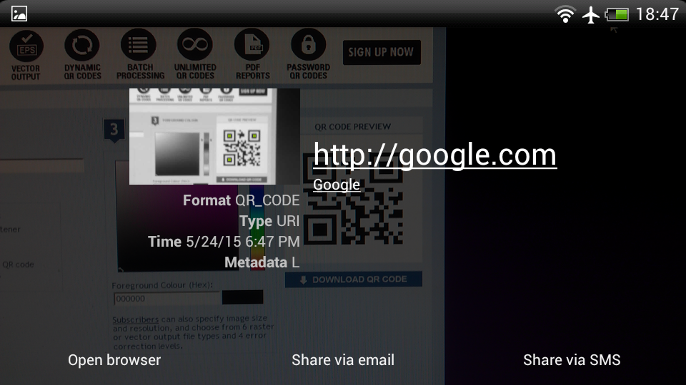 If the QR code contains a URL, you will be presented with the URL and given the option to open it in your phones browser, if the QR code only contains text, you will instantly see it and have the option to web search it.