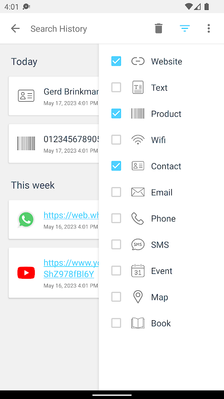 The QR code scanner and barcode scanner app protects you from malicious links with the Google Safe Browsing technology.