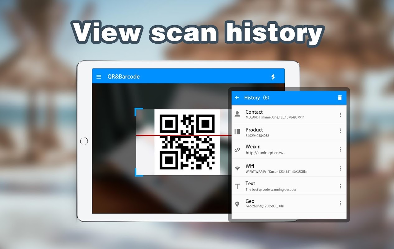 C'est une application de scanner de code QR. En l'utilisant, vous pouvez numériser pour décoder les codes-barres 1D, les codes QR et la matrice de données. Avec une interface propre et simple, vous pouvez le gérer plus rapidement que les autres applications de scanner de codes à barres (lecteur de code). En quelques clics, votre appareil devient un lecteur de codes-barres et un éditeur de numérisation pratique. De plus, notre application QR Barcode Scanner protège totalement votre confidentialité, vous n'avez donc pas à vous soucier de la fuite de vos informations vers les autres.