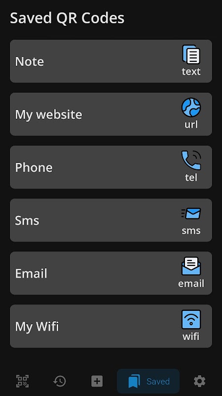 Codes QR enregistrés : Vous pouvez enregistrer les codes QR que vous avez créés. Vous pouvez ensuite les partager comme bon vous semble.