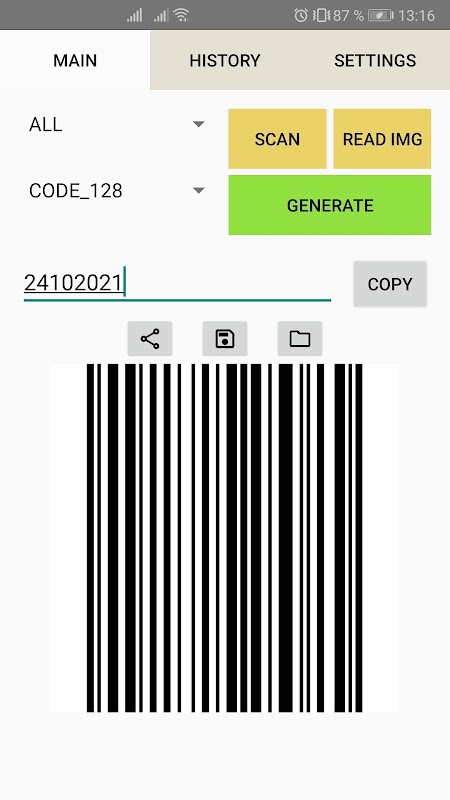 - génération de code rapide avec votre propre texte ou texte à partir d'un autre code scanné avec la possibilité de le modifier ;