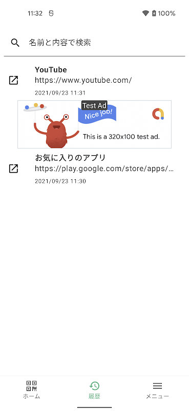 À propos de QRコードリーダー - 履歴に名前を付けることができます