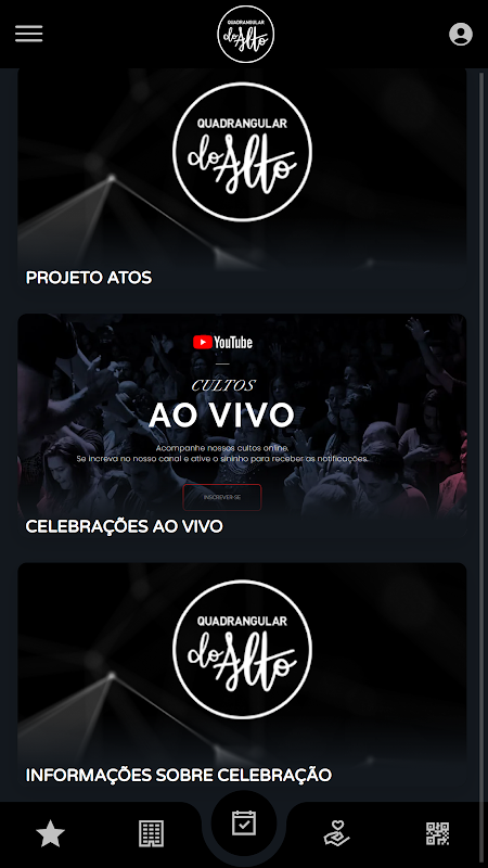 🎶 Contenu (audio/vidéo) : Vous permet de consulter et d'écouter le contenu de l'Église disponible sur l'application ;