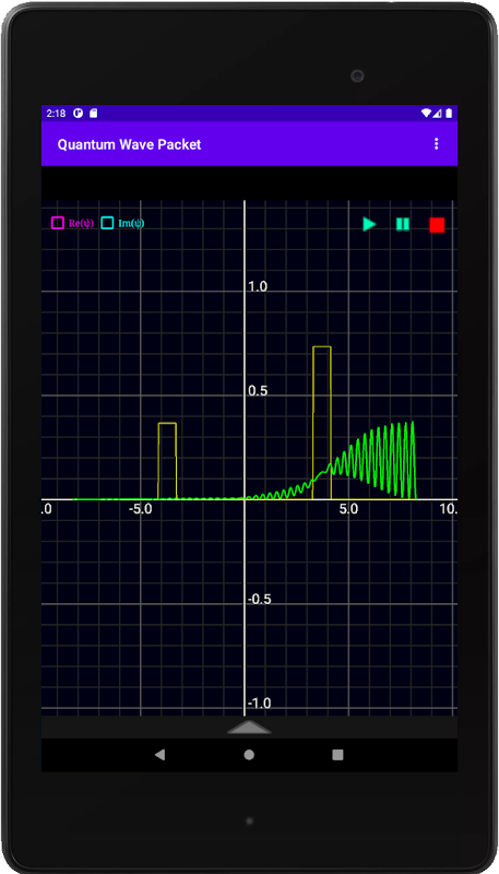 In this app, you can freely define initial conditions of wave packet and potential energy and observe how electron moves under the conditions. Let's observe how electron passes through potential barrier, and so on!